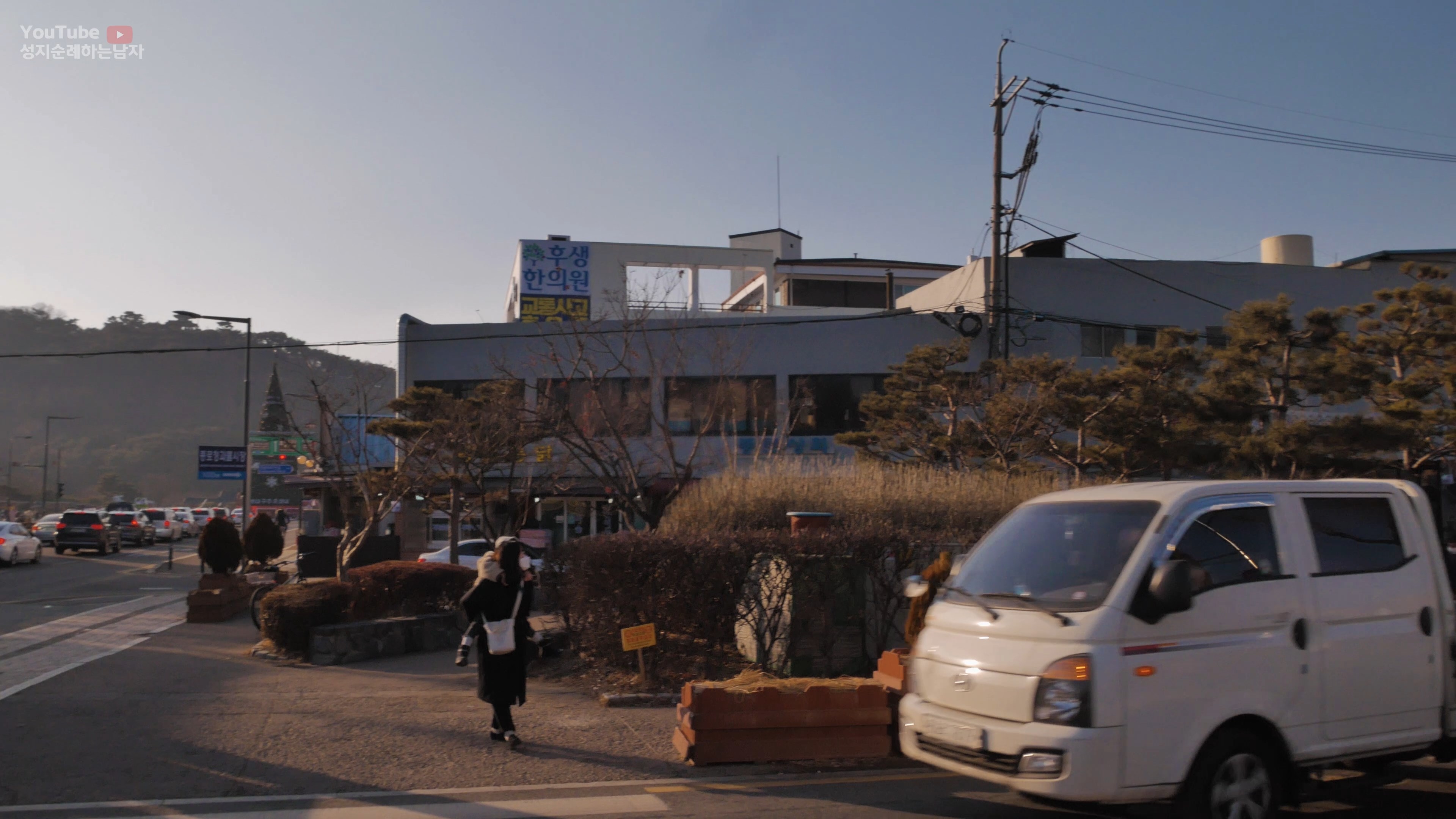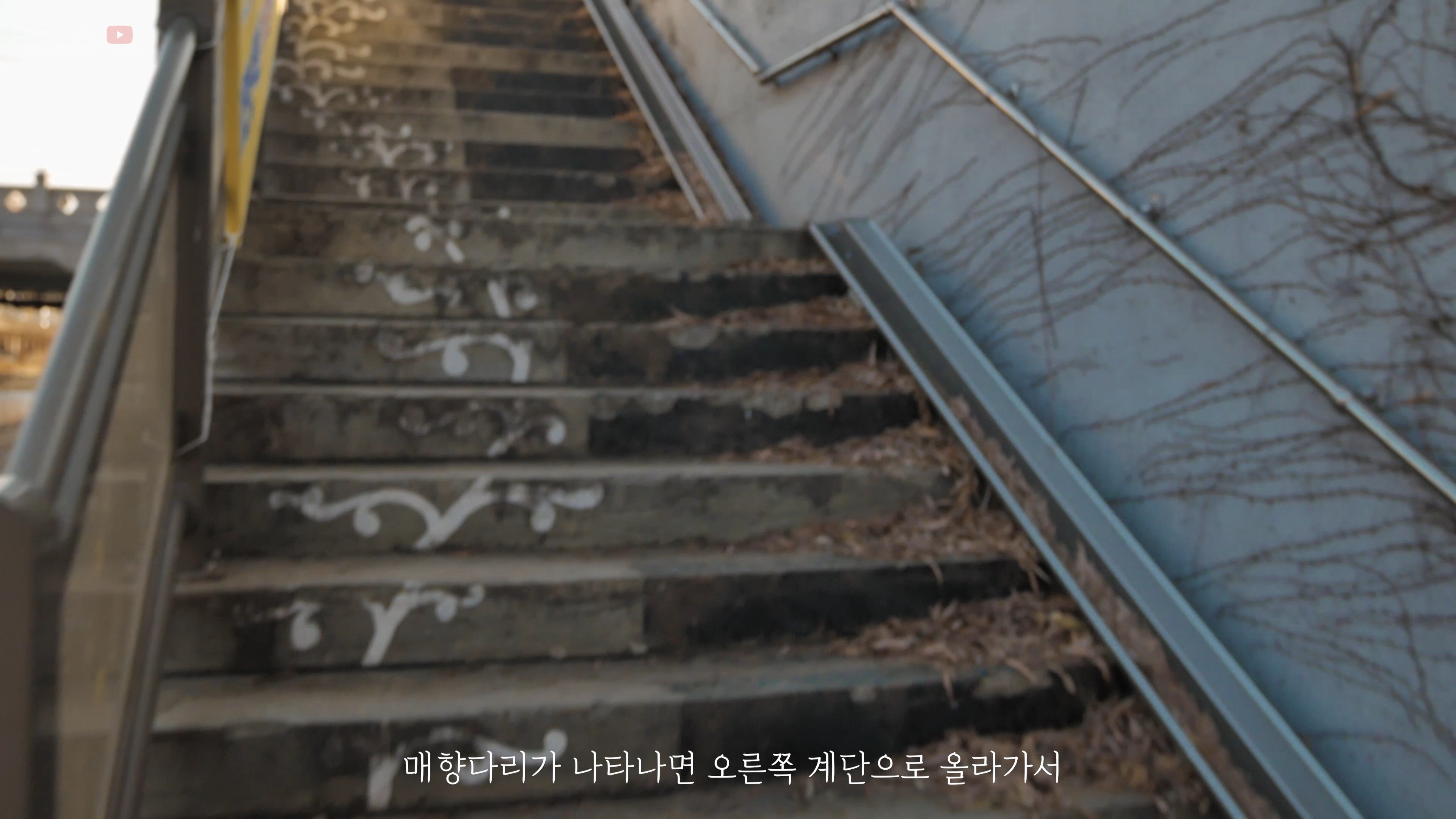 매향다리가 나타나면 오른쪽 계단으로 올라가서 오른쪽 후생병원 방향으로 길을 건너갑니다.