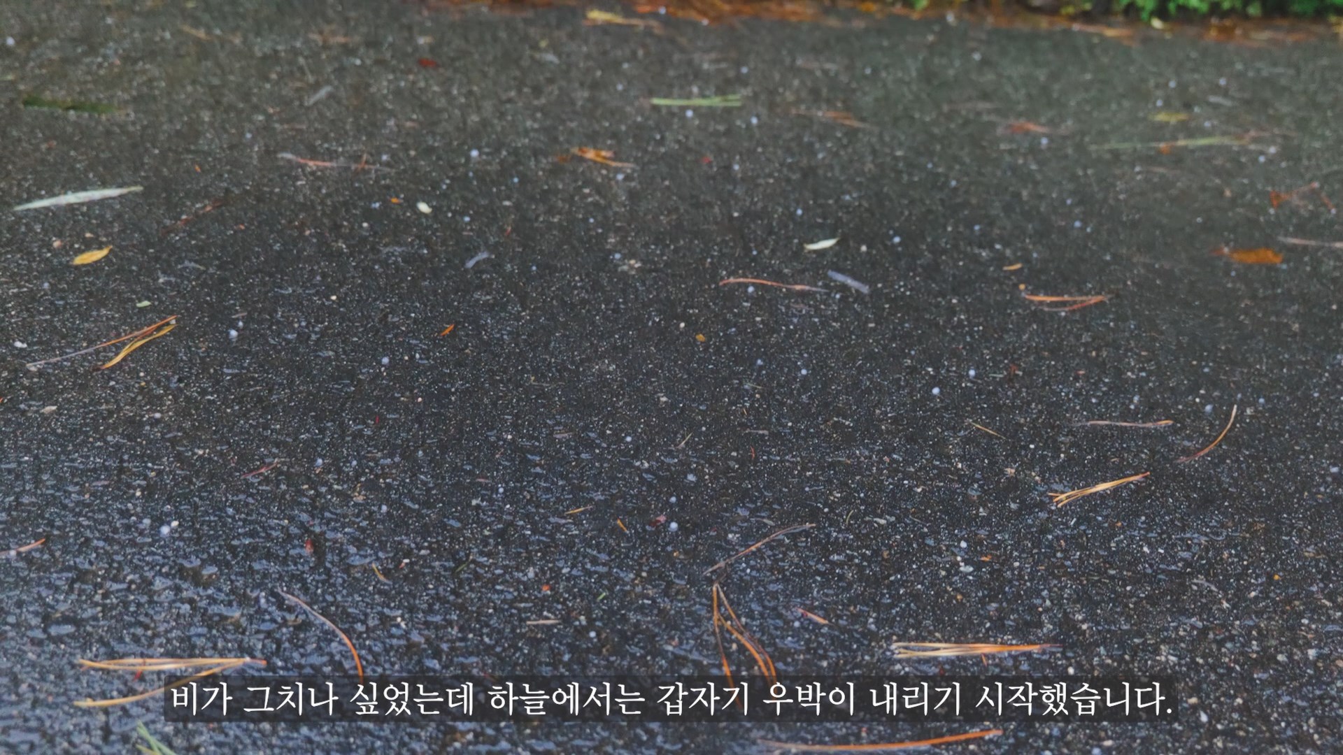 다시 비가 오고 다시 우박이 내리는 날씨에서