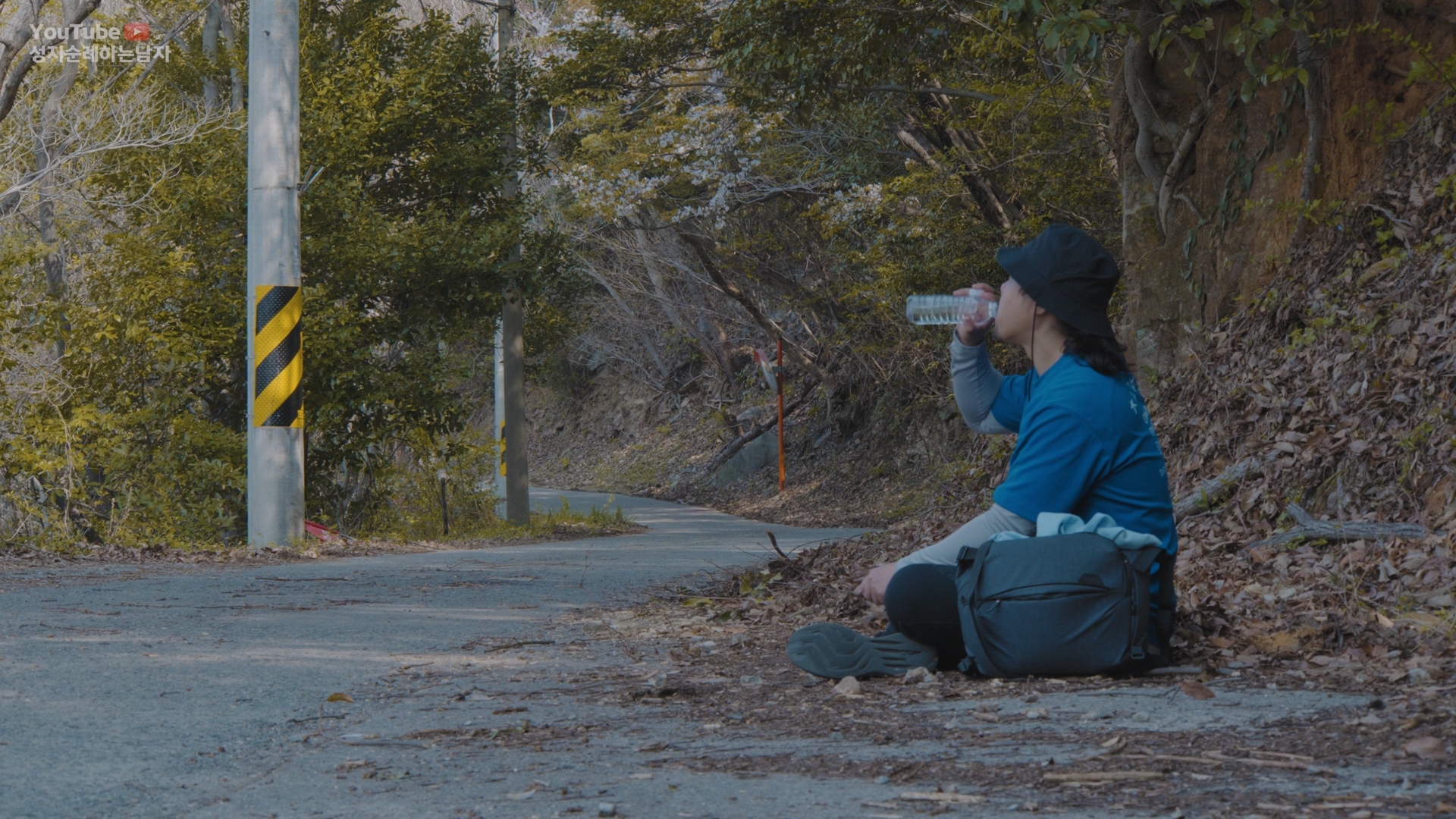 이제 다시 왔던 길을 되돌아가서 숲길과 도로가 만나는 삼거리까지 가도록 하겠습니다.
